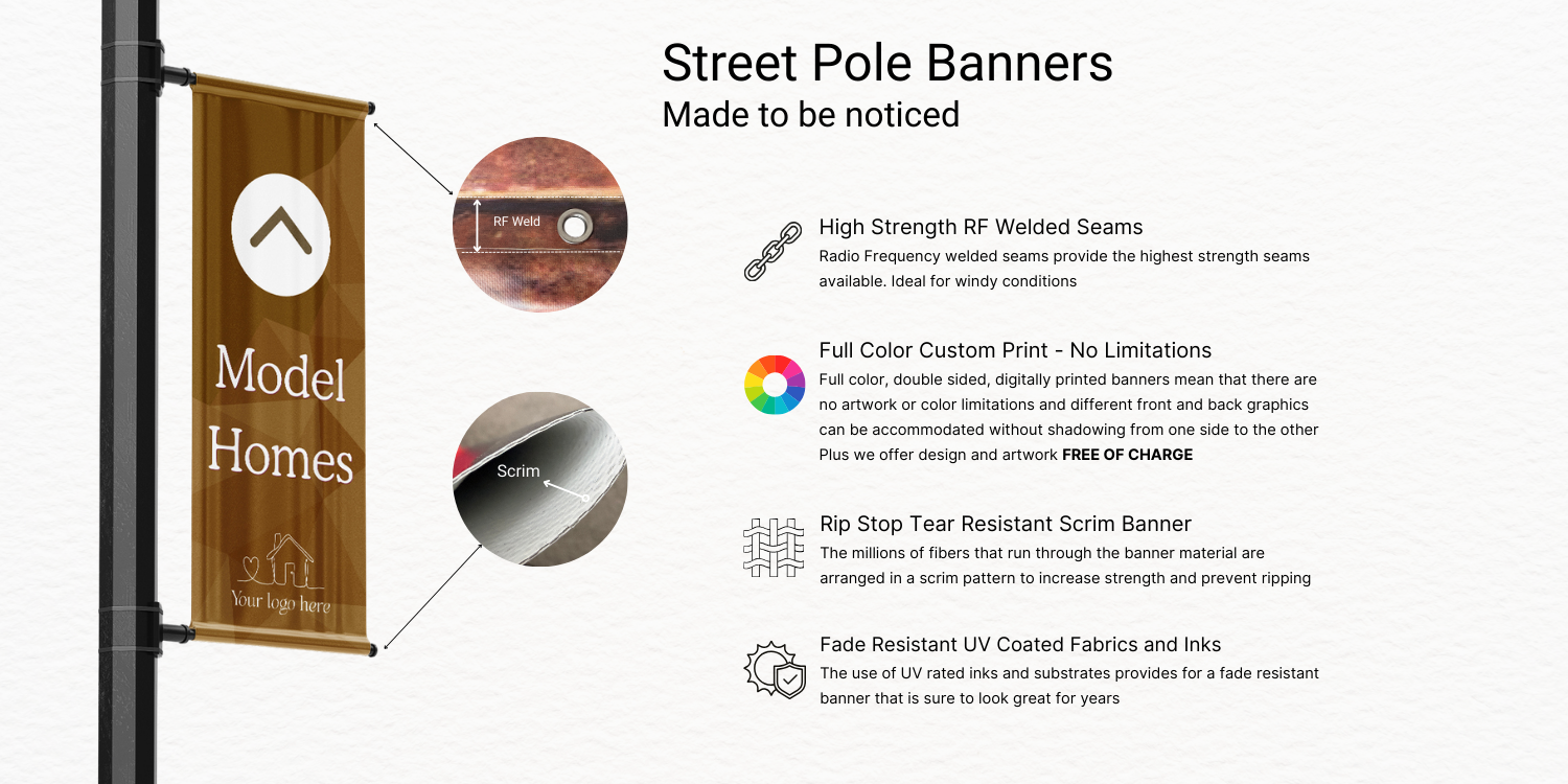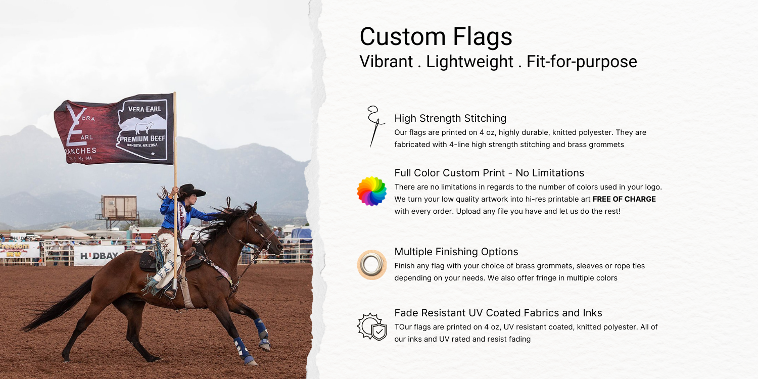 Banners & flags retain color in the harshest environments due to UV coated fabrics and UV rated inks