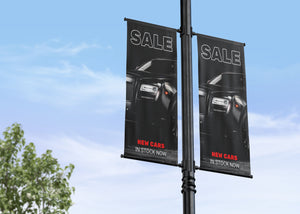 Our Automotive Street Pole Banners are manufactured with 18 oz heavy duty blockout vinyl, which provides the high tensile breaking strength needed for banners as well as blockout and rip-stop properties. Ideal for light pole installations at car lots and dealerships
