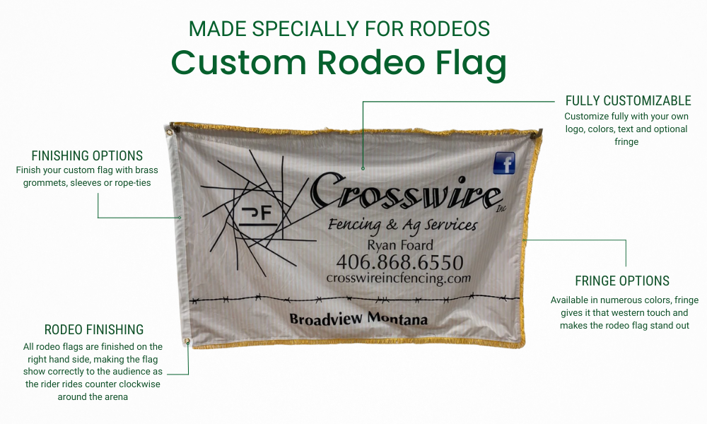 Full Color Printed Custom Rodeo Flags- Print your Rodeo Sponsor's logo and text on the flag with no color or design limitations!